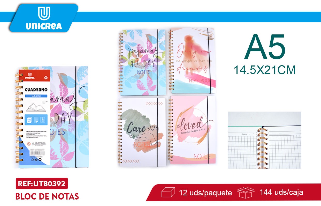 A5 CUARDENO CON ESPIRAL Y ELASTICO MATEMATICO 100HOJAS 7MM X 12UNI