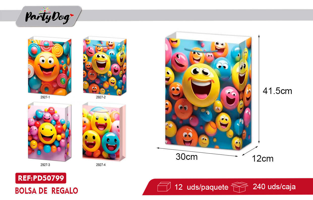 BOLSA DE REGALO EMOJI L 30X41.5X12CM X12 UNI