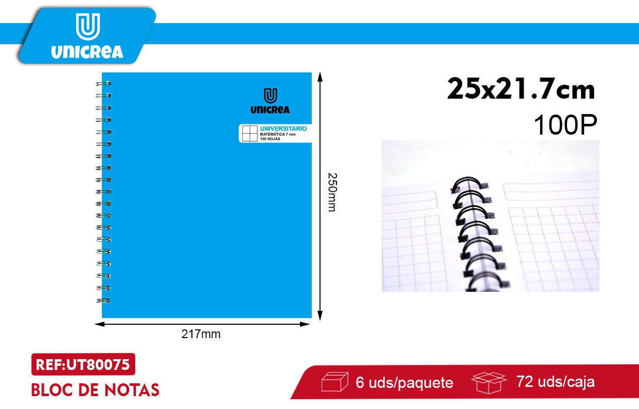 CUADERNO UNIVERSITARIO B5 7MM 80HOJAS X 12UNI