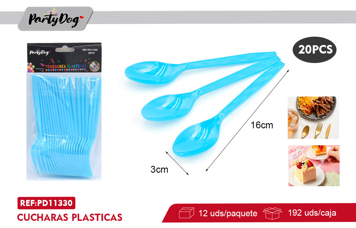 CUCHARAS PLASTICAS 20PCS CELESTE