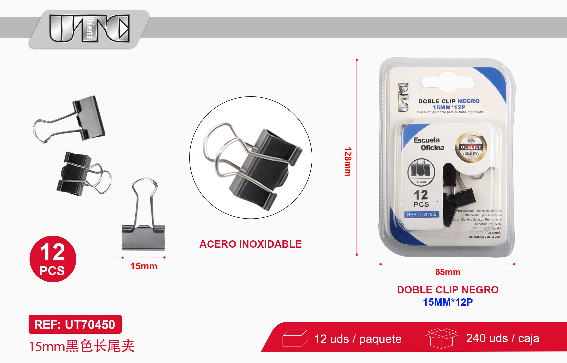 / DOBLE CLIP NEGRO 15MM*12PCS