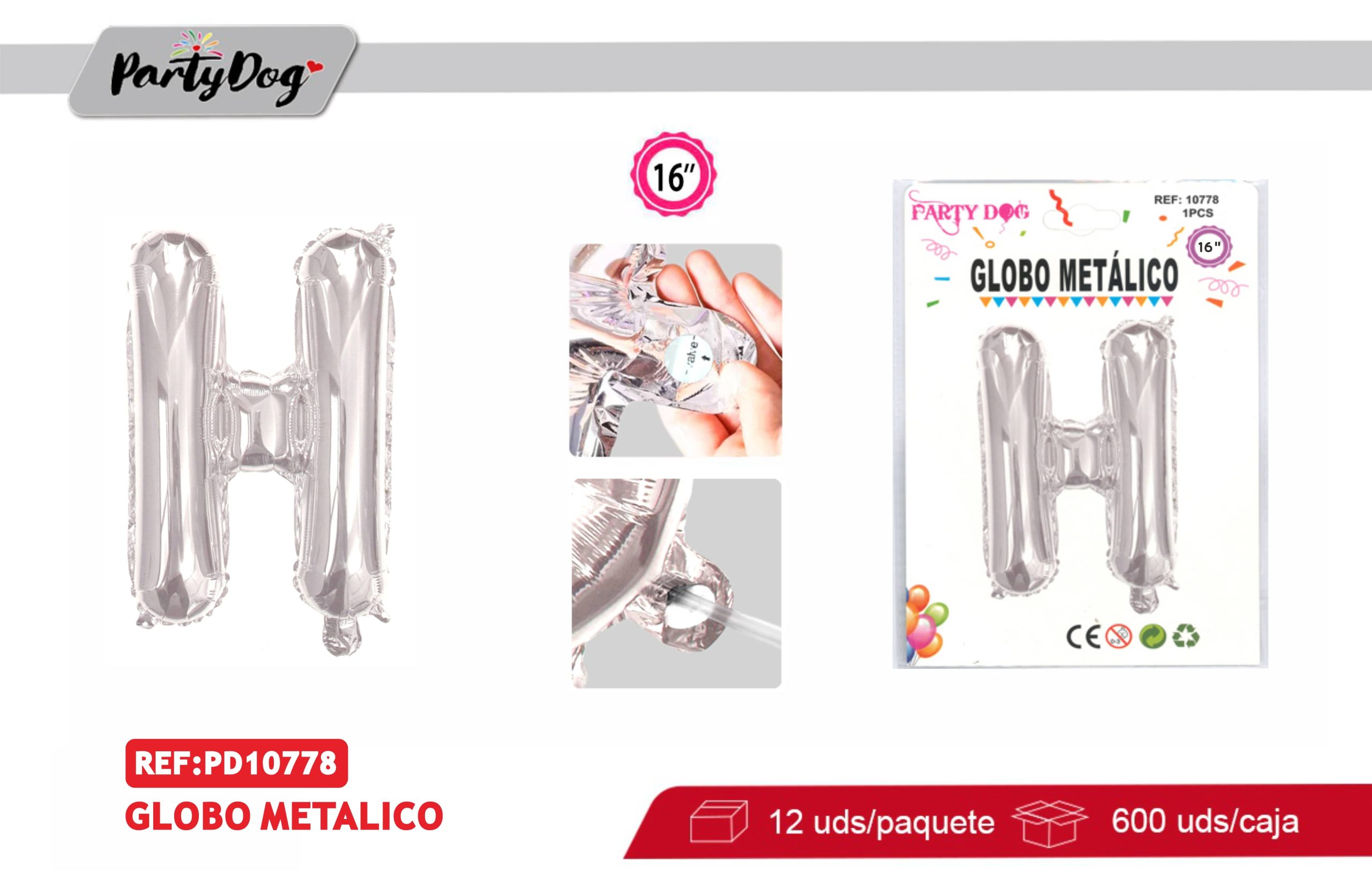 / GLOBO METALICO 16″PLATEADO H