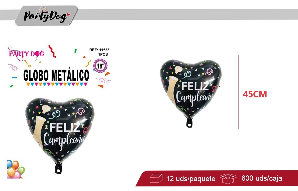 GLOBO METALIZADO 45CM CORAZON FELIZ CUMPLEAÑOS