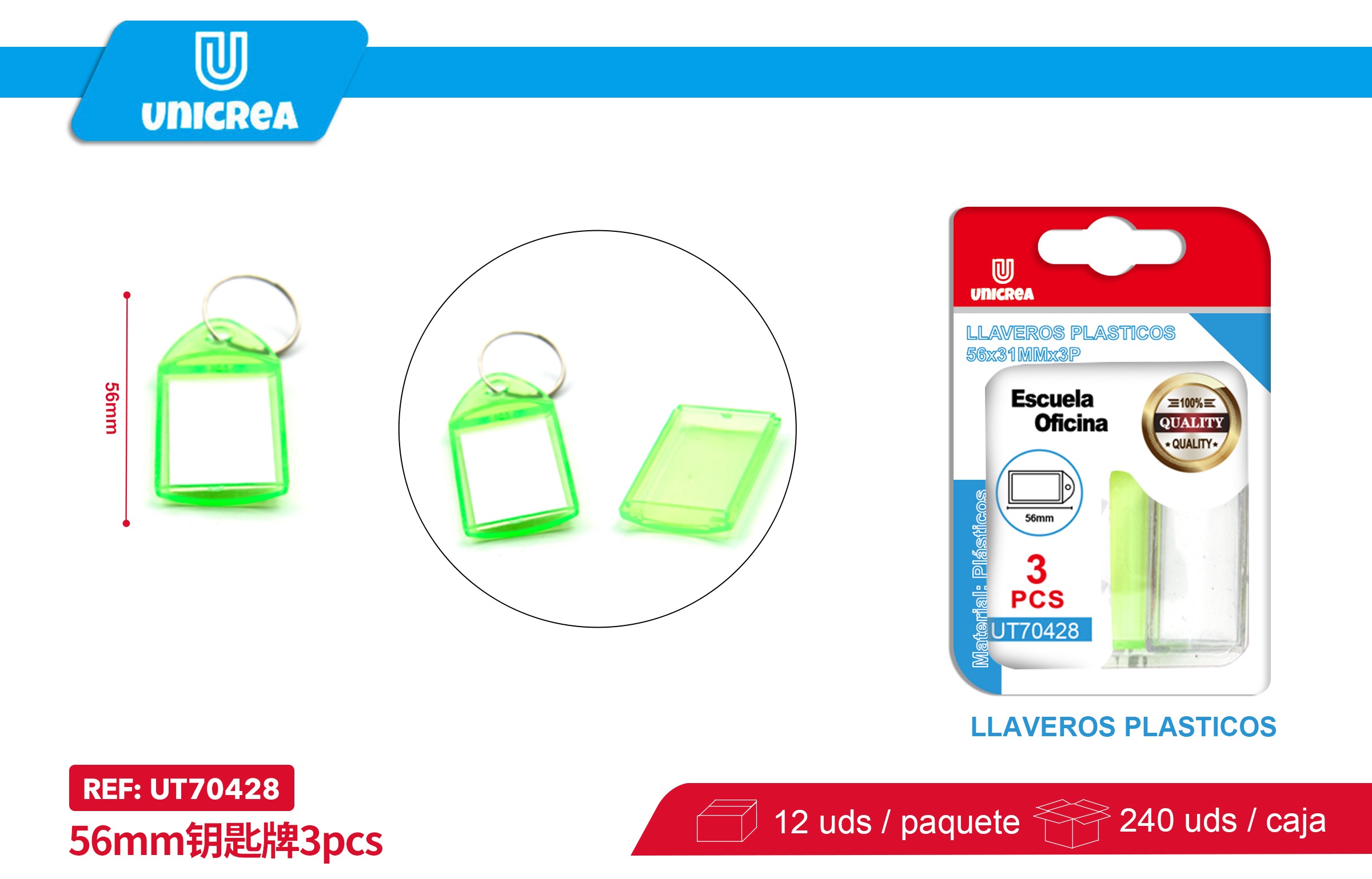 LLAVERO PLASTICO COLORES 56X31MM 3PCS