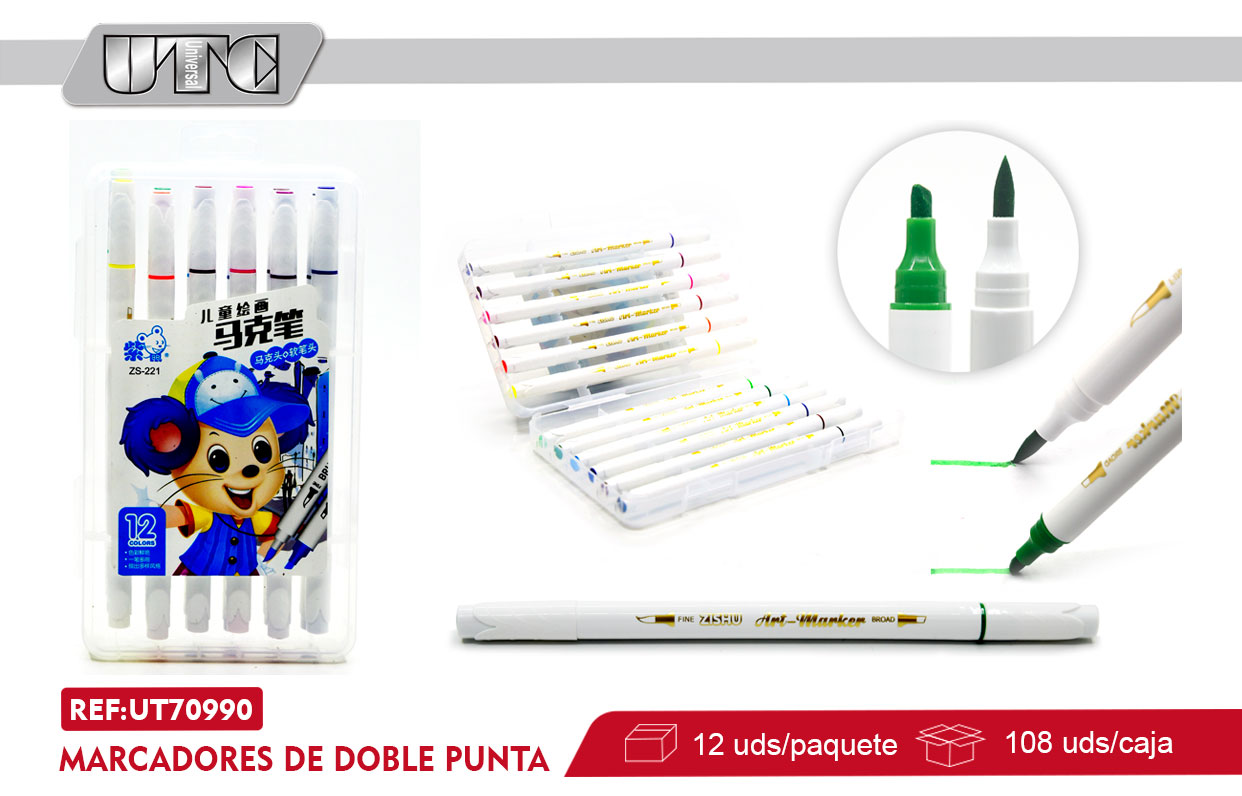 MARCADORES DE DOBLE PUNTA 12 COLORES