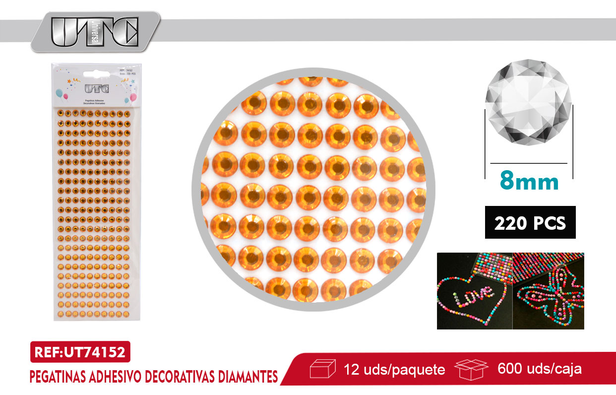 Pegatinas Adhesivo Decorativas Diamantes 8MM 220PCS DORADO PACK 12