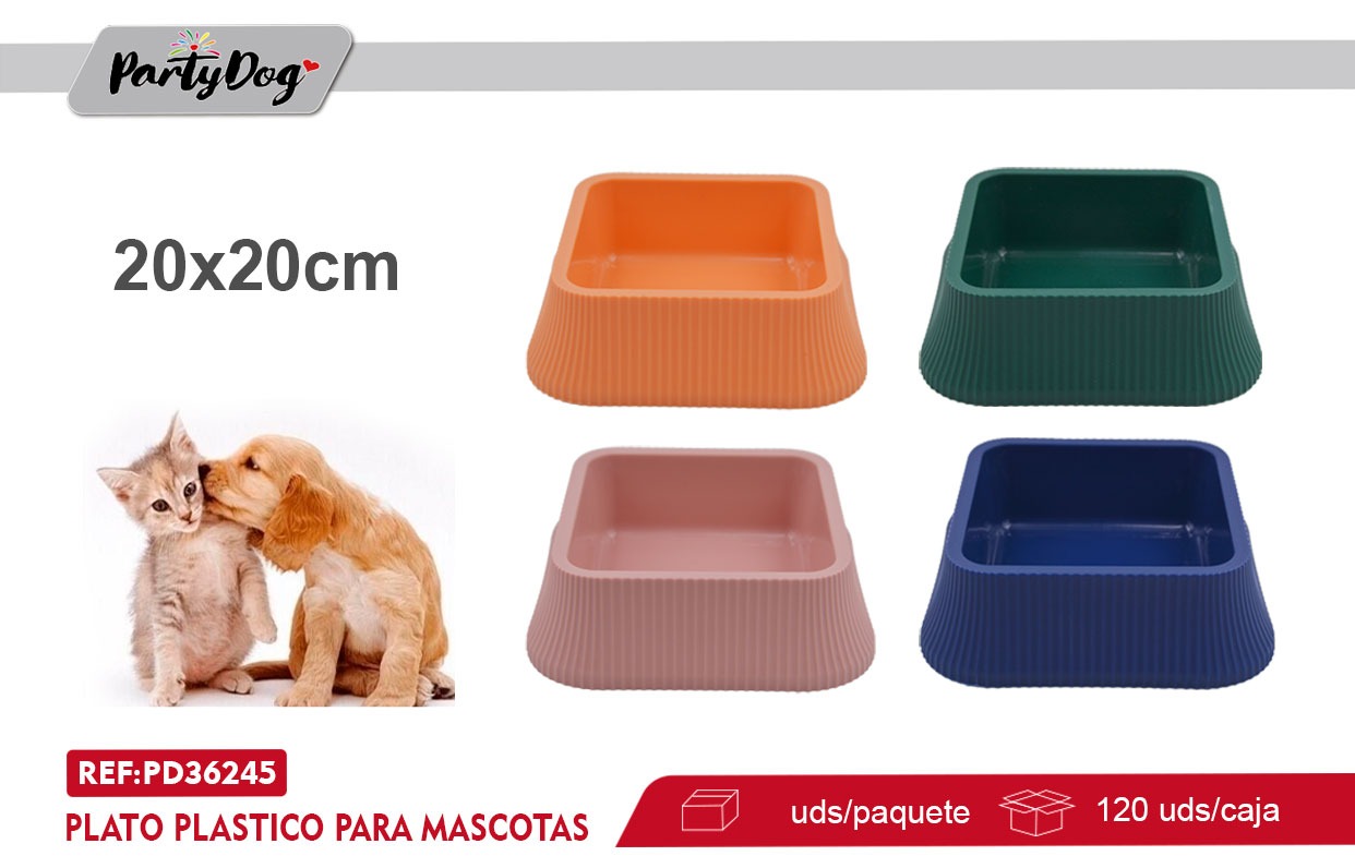 PLATO CUADRADO PLASTICO PARA MASCOTAS 20CM