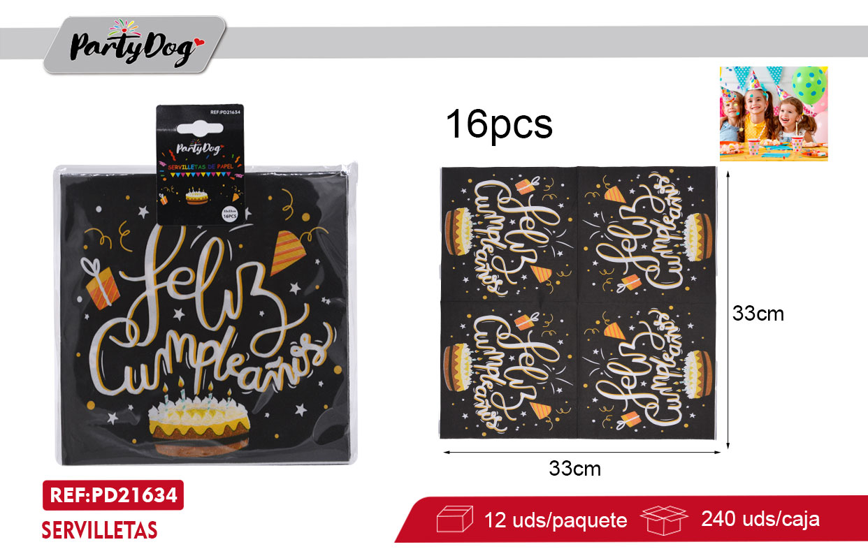 SERVILLETAS FELIZ CUMPLEAÑOS 33CM 16PCS
