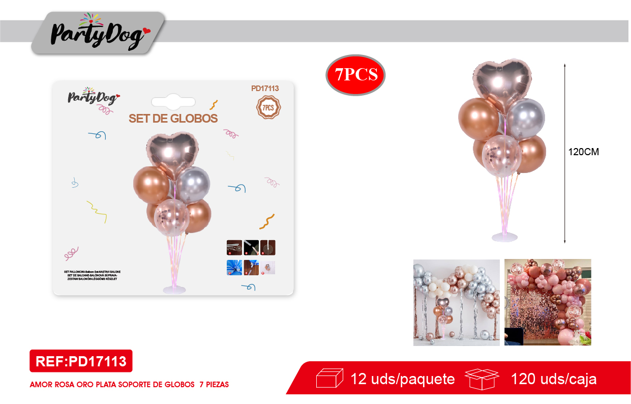 SET DE GLOBOS COROZON CON LUCES ORO ROSA 120CM 7PCS