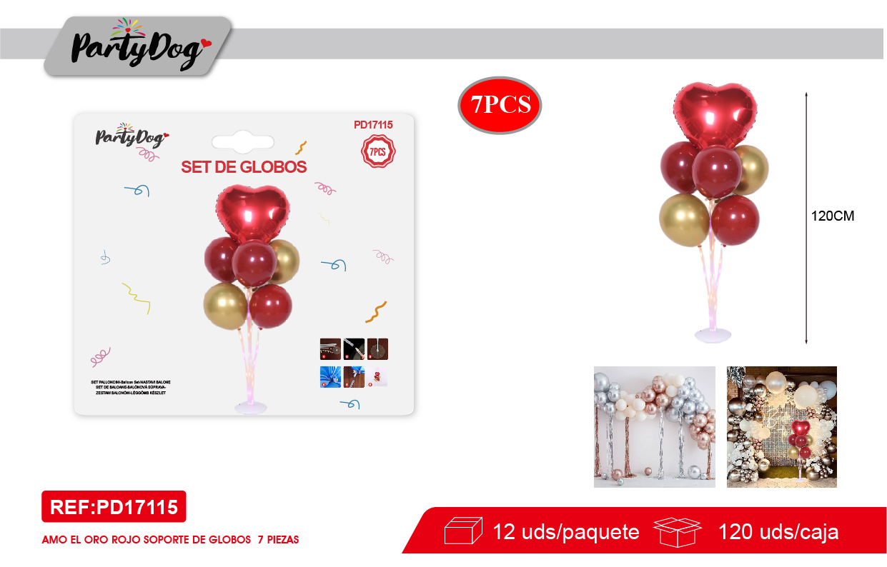 SET DE GLOBOS COROZON CON LUCES ROJO 120CM 7PCS