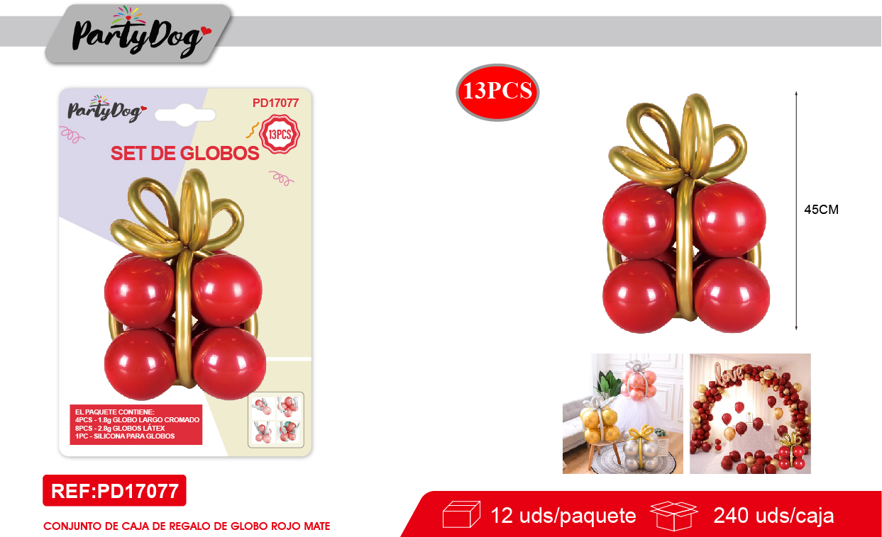 SET DE GLOBOS LATEX CAJA REGALO ROJO 13PCS