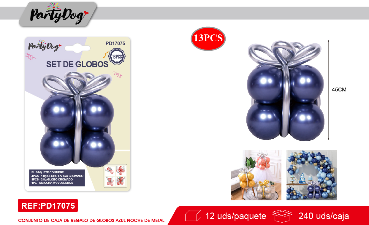SET DE GLOBOS LATEX CROMADO CAJA REGALO GRIS 13PCS