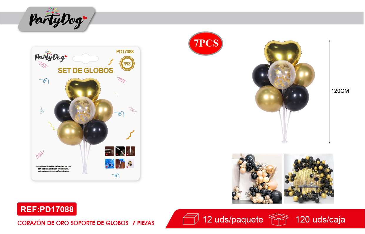 SET DE GLOBOS MESA CENTRA CORAZON NEGRO DORADO 7PCS