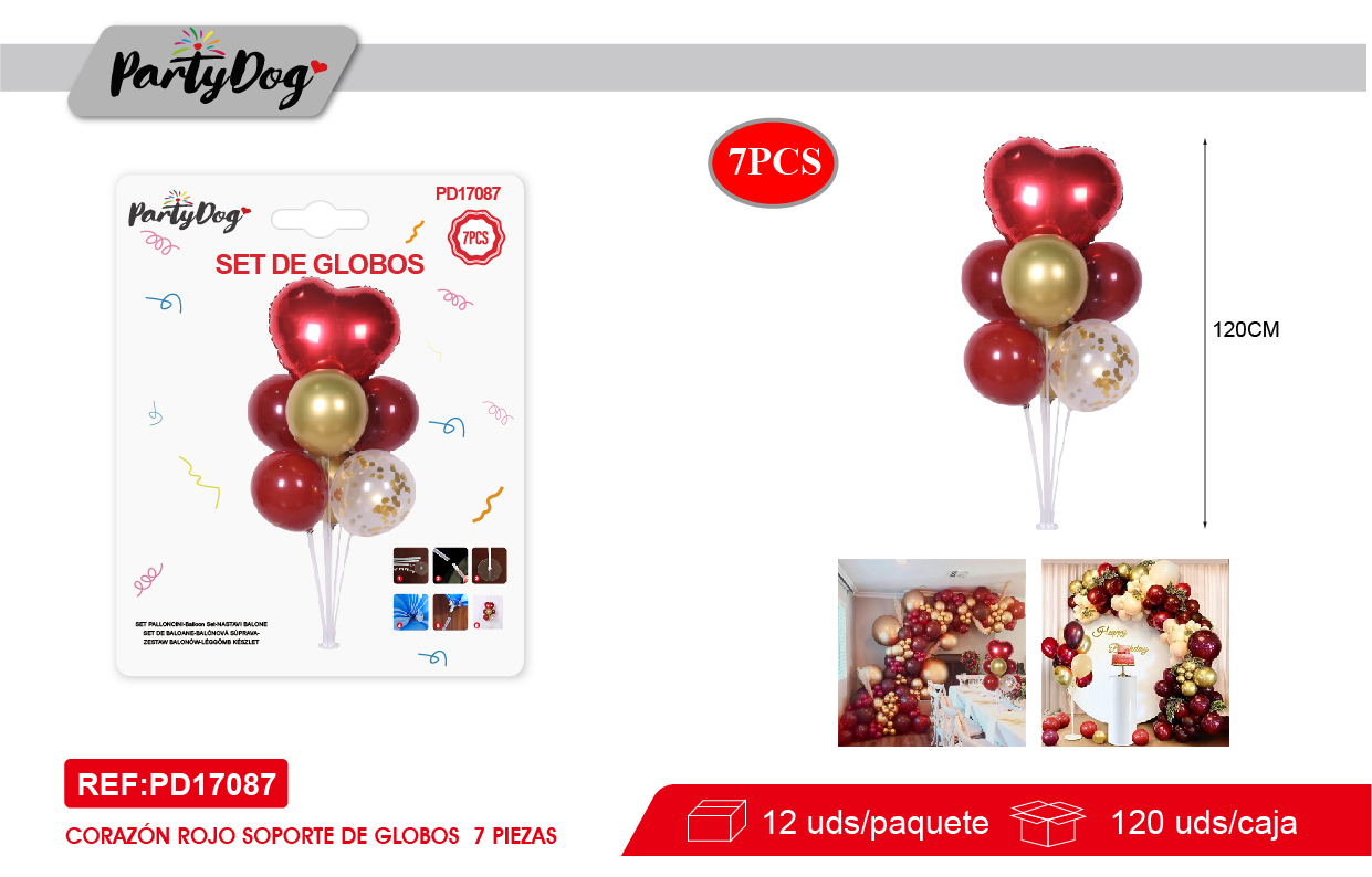 SET DE GLOBOS MESA CENTRA CORAZON ROJO 7PCS