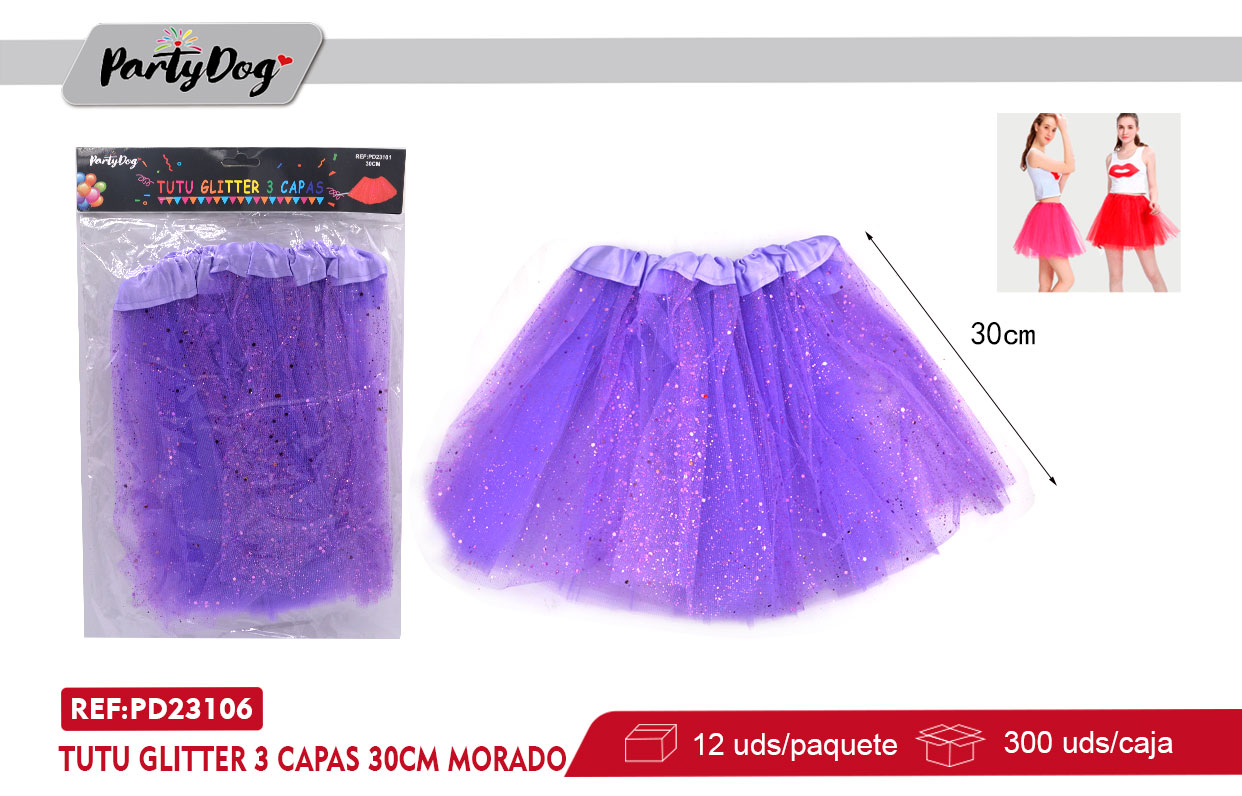 / TUTU GLITTER 3 CAPAS 30CM MORADO