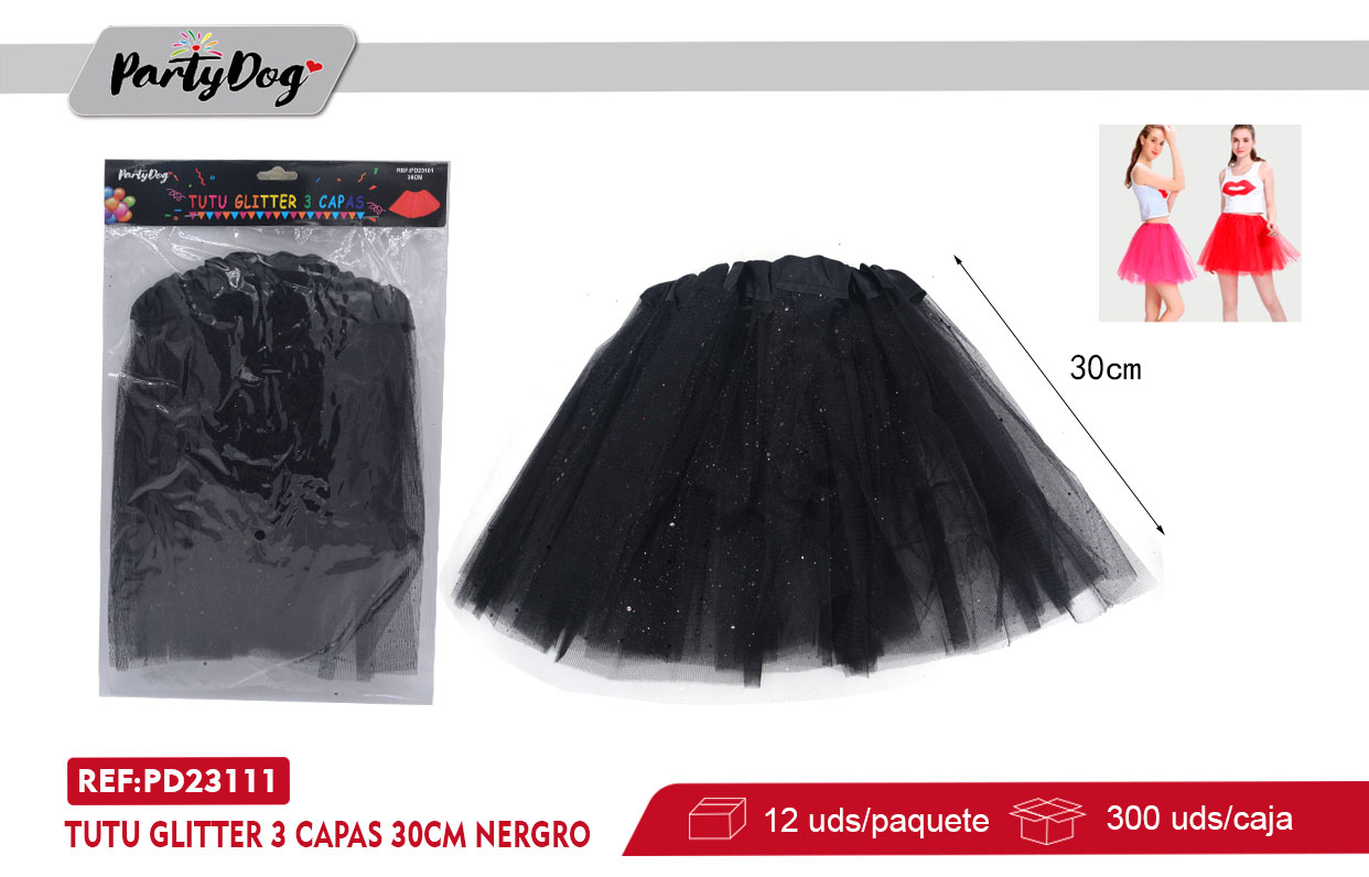 / TUTU GLITTER 3 CAPAS 30CM NERGRO