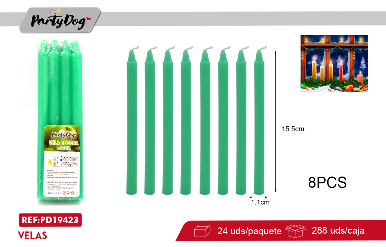 / VELA LISA VERDE 15.5CM 8PCS X 12 UNI