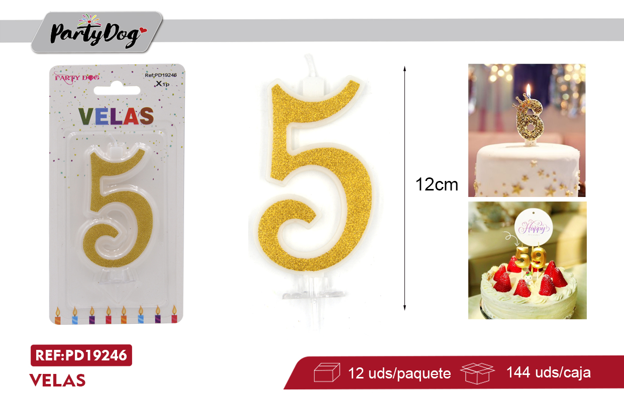 / VELA NUMEROSA 12CM DORADO 5