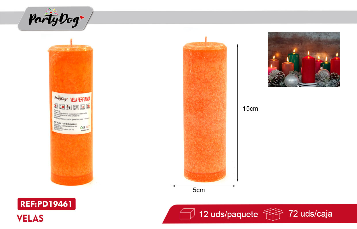 / VELA PILAR 5*15CM NARANJA X 12 UNI