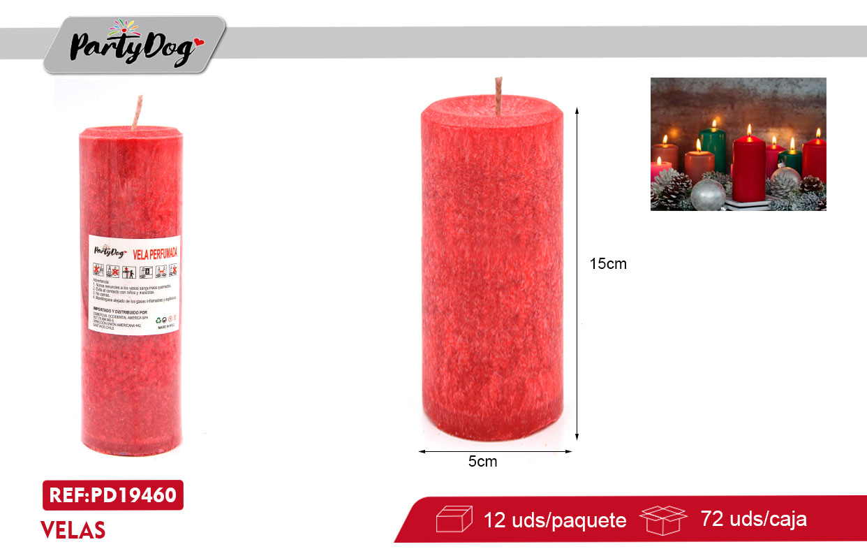 / VELA PILAR 5*15CM ROJA X 12 UNI