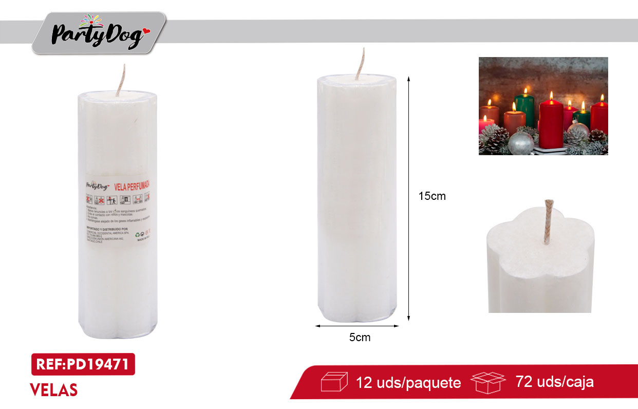 / VELA PILAR FLUOR 5*15CM BLANCO X 12 UNI