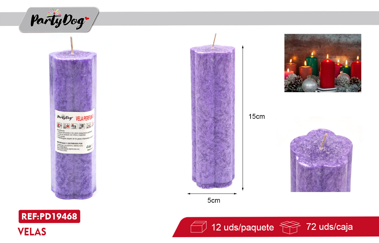 VELA PILAR FLUOR 5*15CM MORADO X 12 UNI