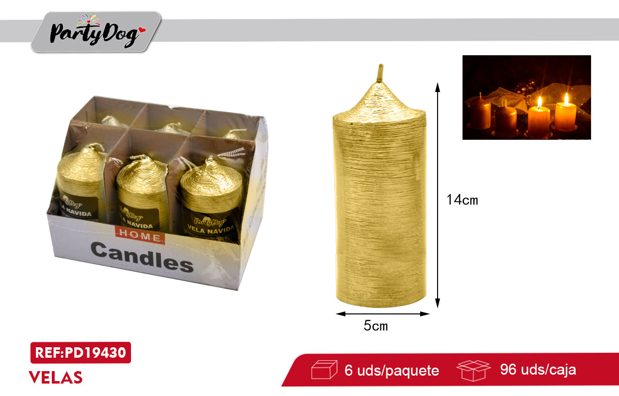 VELA PILAR METALICA 5*10CM DORADA X 6 UNI