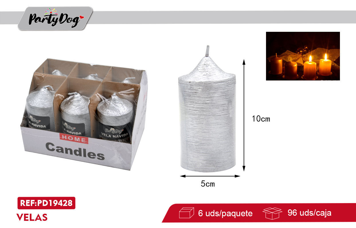 VELA PILAR METALICA 5*10CM PLATEADA X 6 UNI