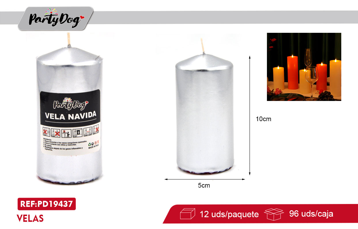 VELA PILAR METALICA 5*10CM PLATEADO X 12 UNI