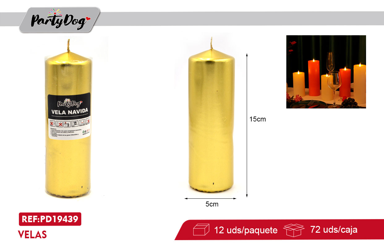 VELA PILAR METALICA 5*15CM DORADO X 6 UNI