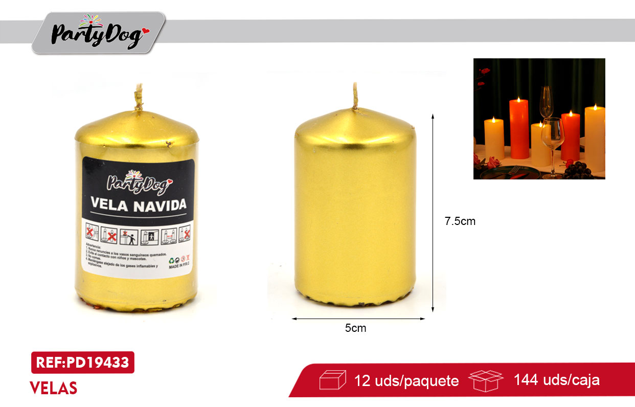 VELA PILAR METALICA 5*7.5CM DORADO X 12 UNI