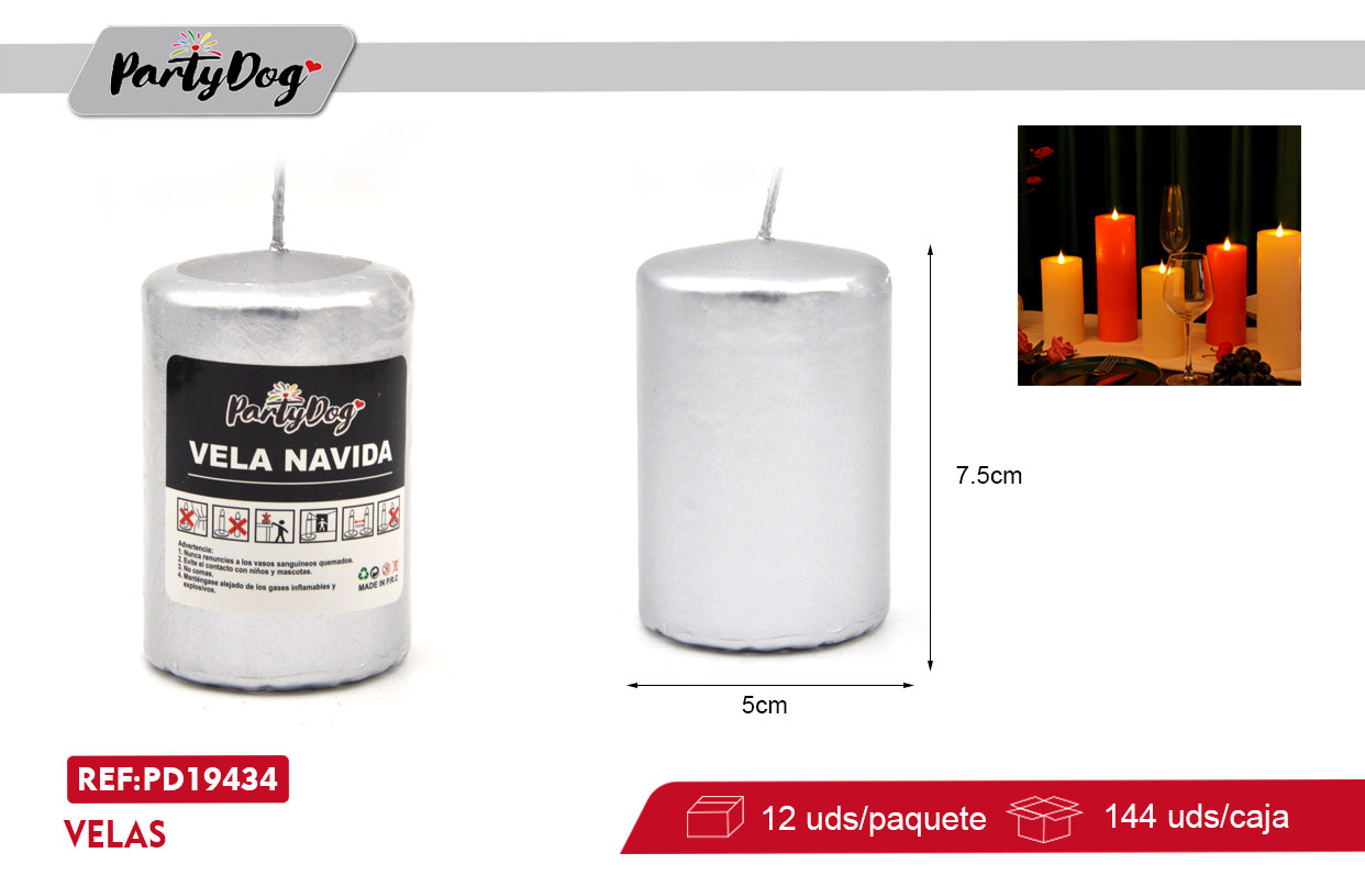 VELA PILAR METALICA 5*7.5CM PLATEADO X 12 UNI