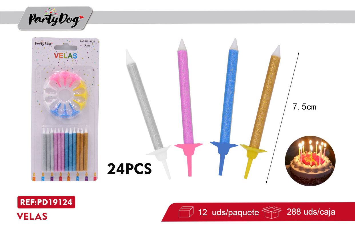 VELAS FELIZ CUMPLEAÑOS COLORES 24PCS