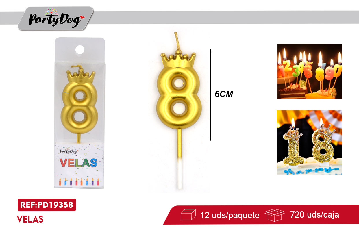 / VELAS NUMEROS CORONA DORADO 8